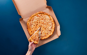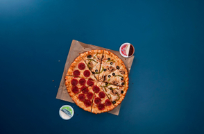 بيتزا صغيرة (العجينة الأصلية)، طبق جانبي (بطاطس الودجز أو 4 قطع دجاج الكيكرز) ومشروب غازي