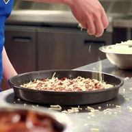 Pizza Sauce, Mozzarella, Onions, Green Peppers, Jalapeno & Beef